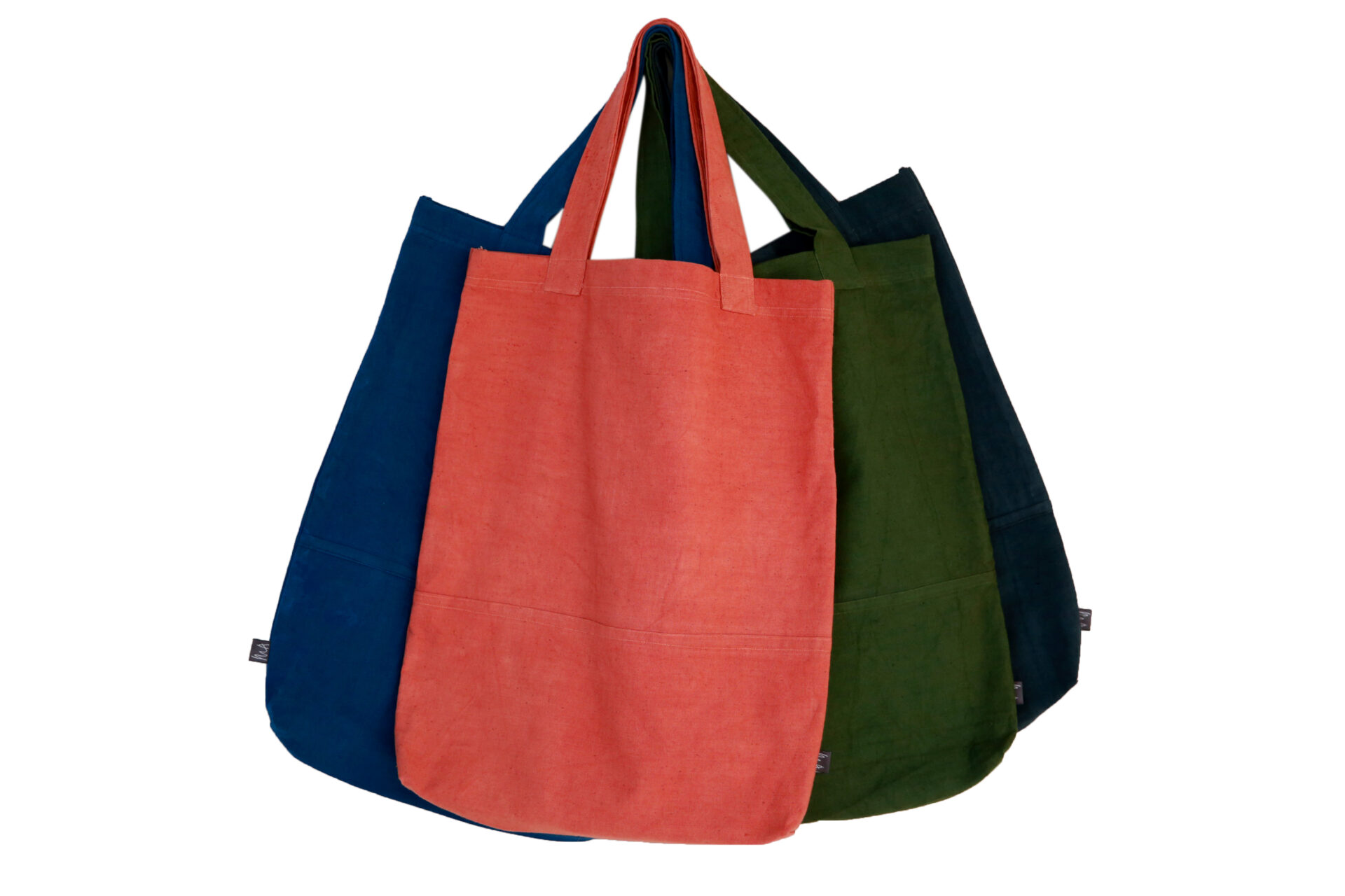 Chaque sac est teint à la main, ce qui lui donne une couleur authentique et un rendu unique. Leur grande contenance permet de transporter facilement baguettes, pains, viennoiseries ou même fruits et légumes.