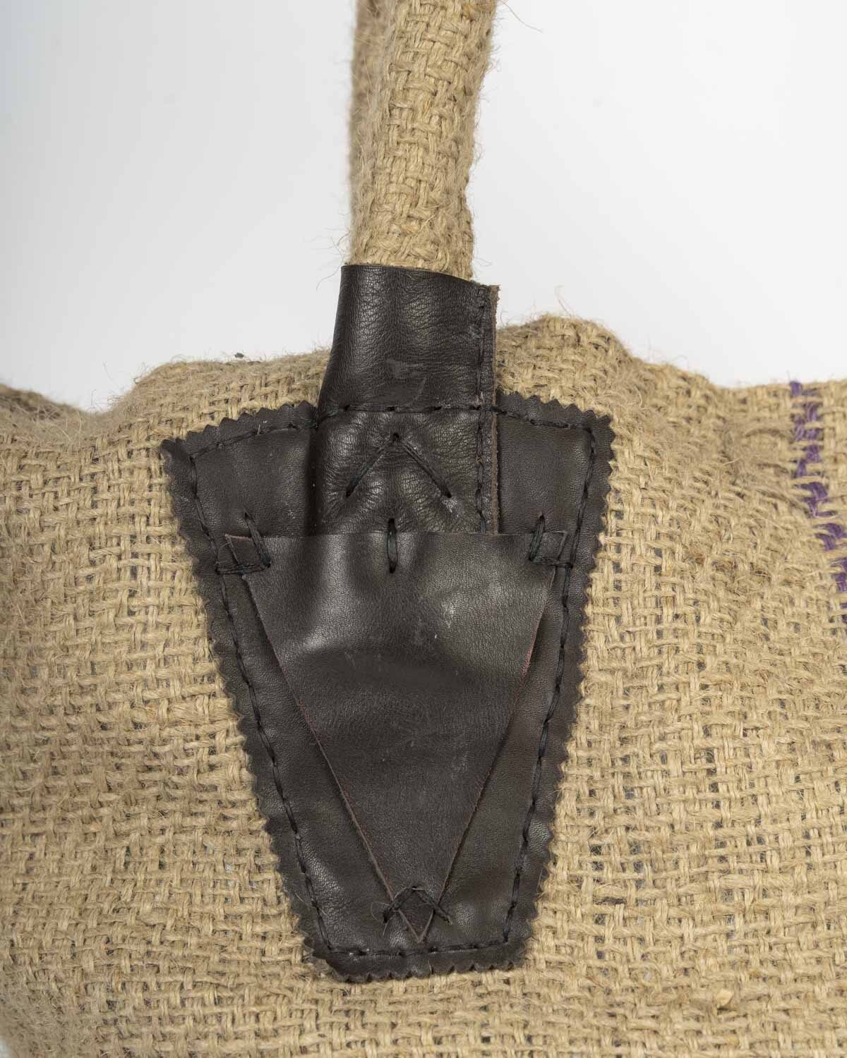 Cabas artisanal en jute naturelle tissé à la main, avec poignées renforcées en cuir recyclé. Léger, solide et unique, il accompagne vos sorties quotidiennes tout en soutenant un artisanat éthique.