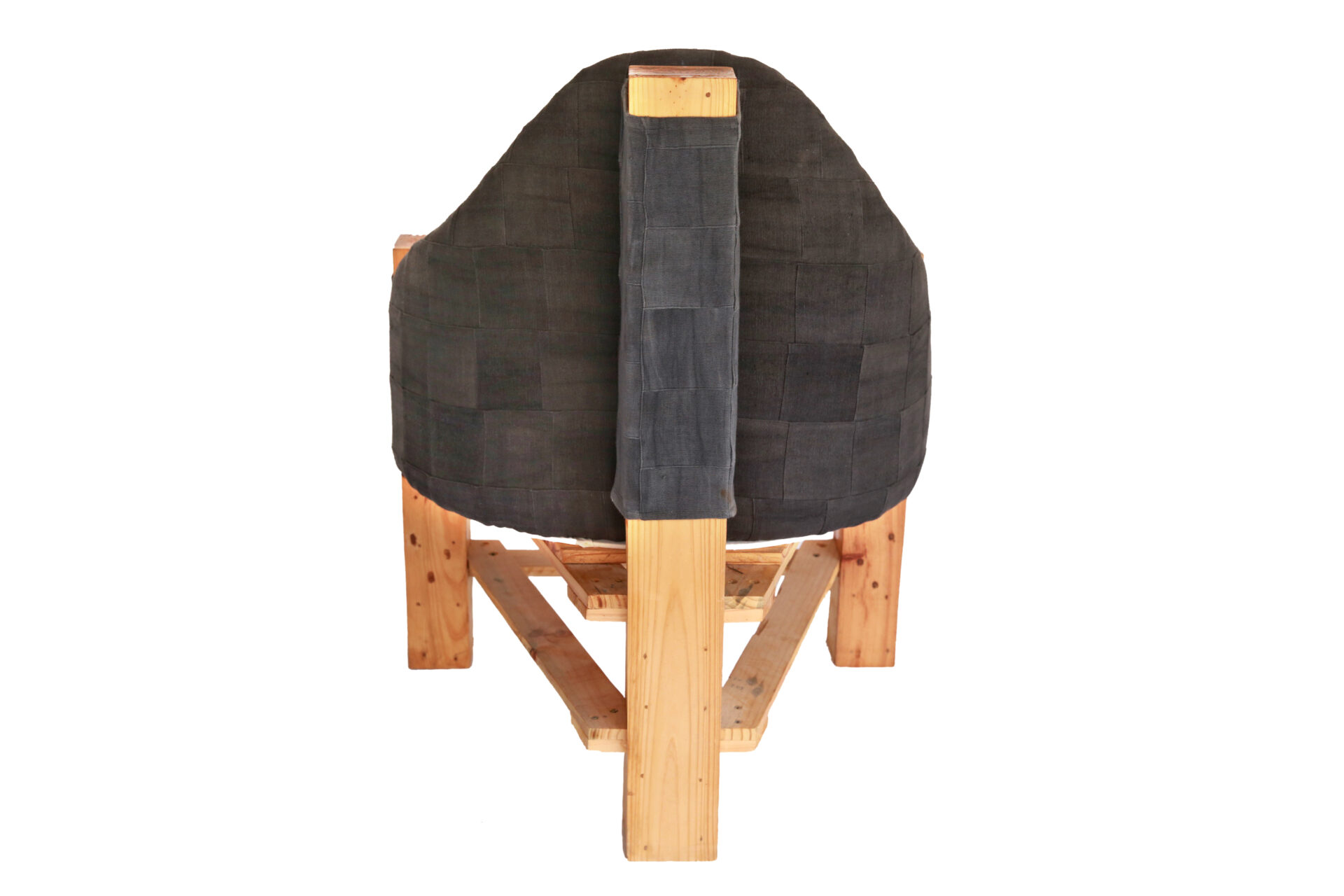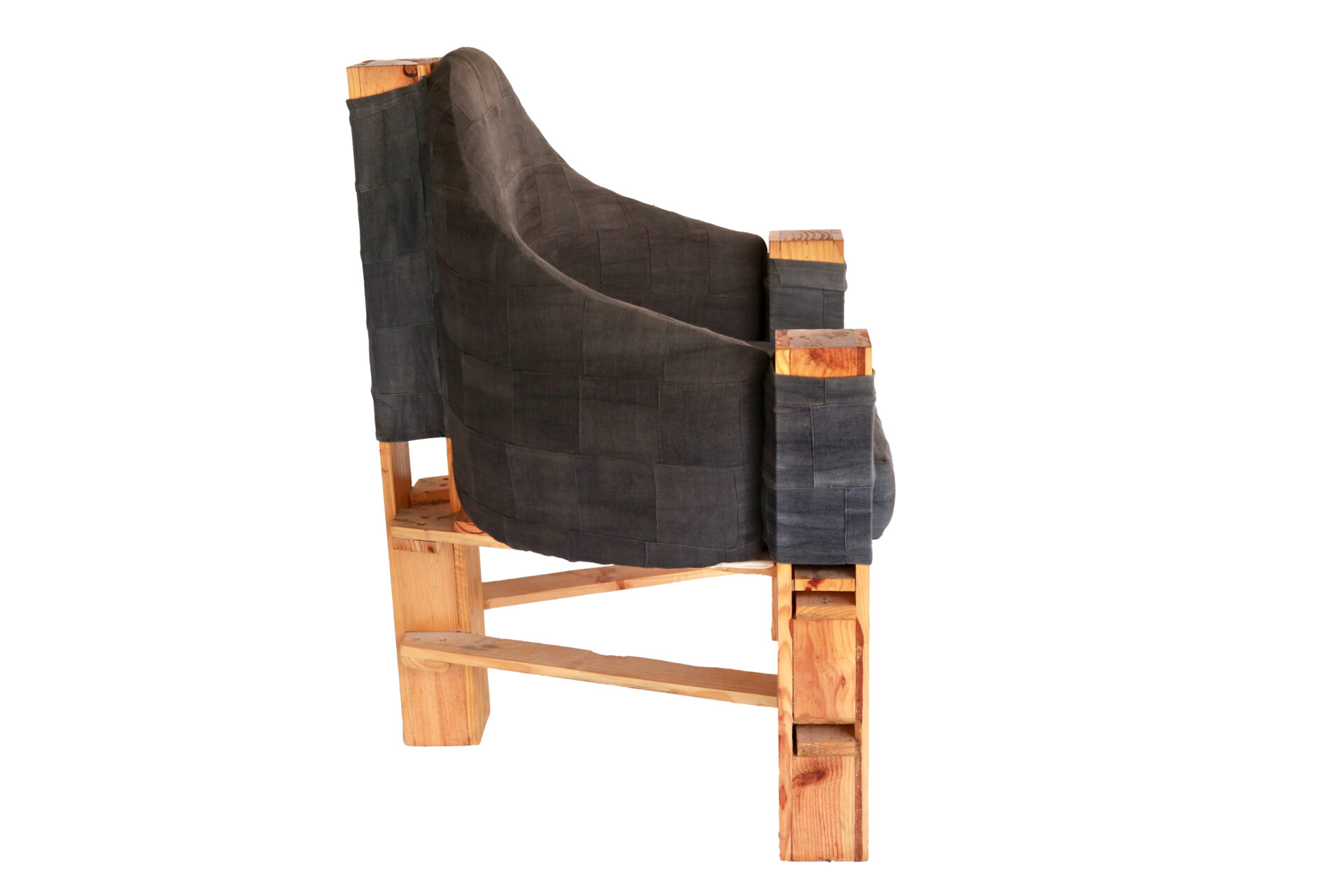 Matière : Bois de palette recyclé + tissu tissé gris teint à la main
