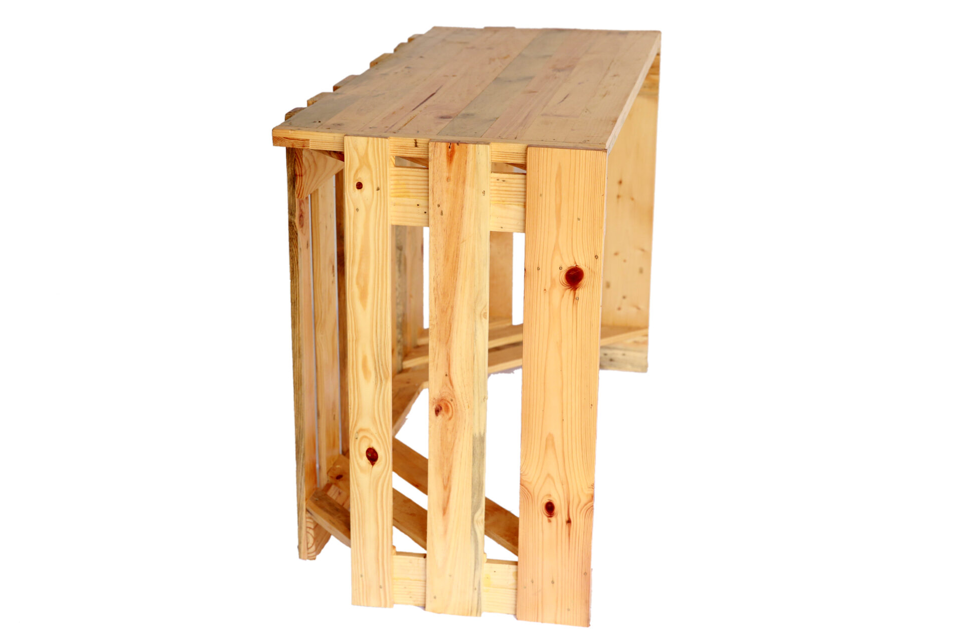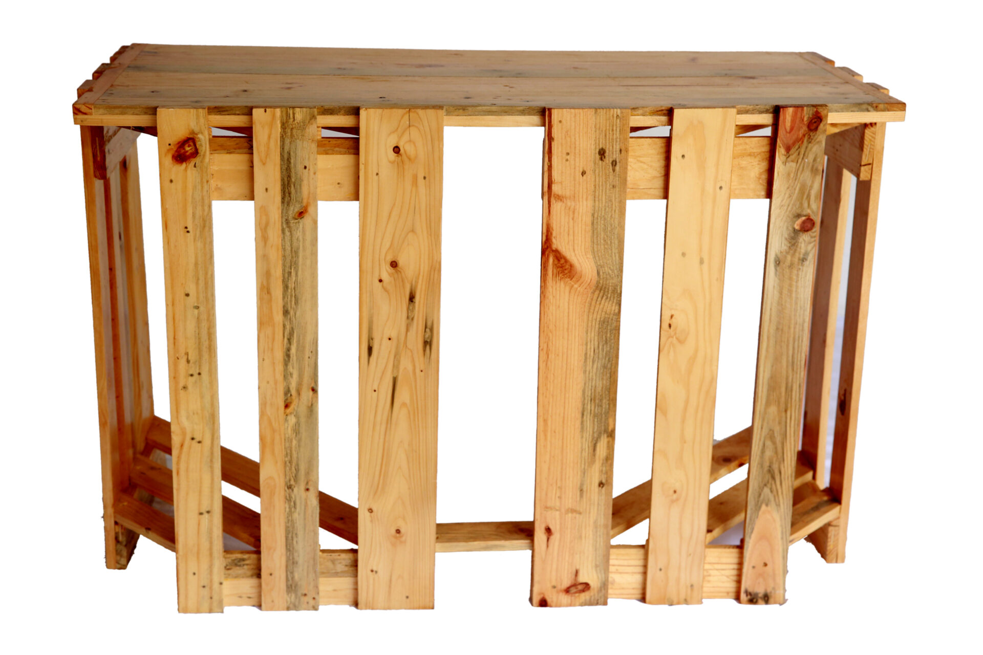 Matière : Bois de palette recyclé (EPAL), sélectionné pour ses nuances naturelles et ses marques authentiques.