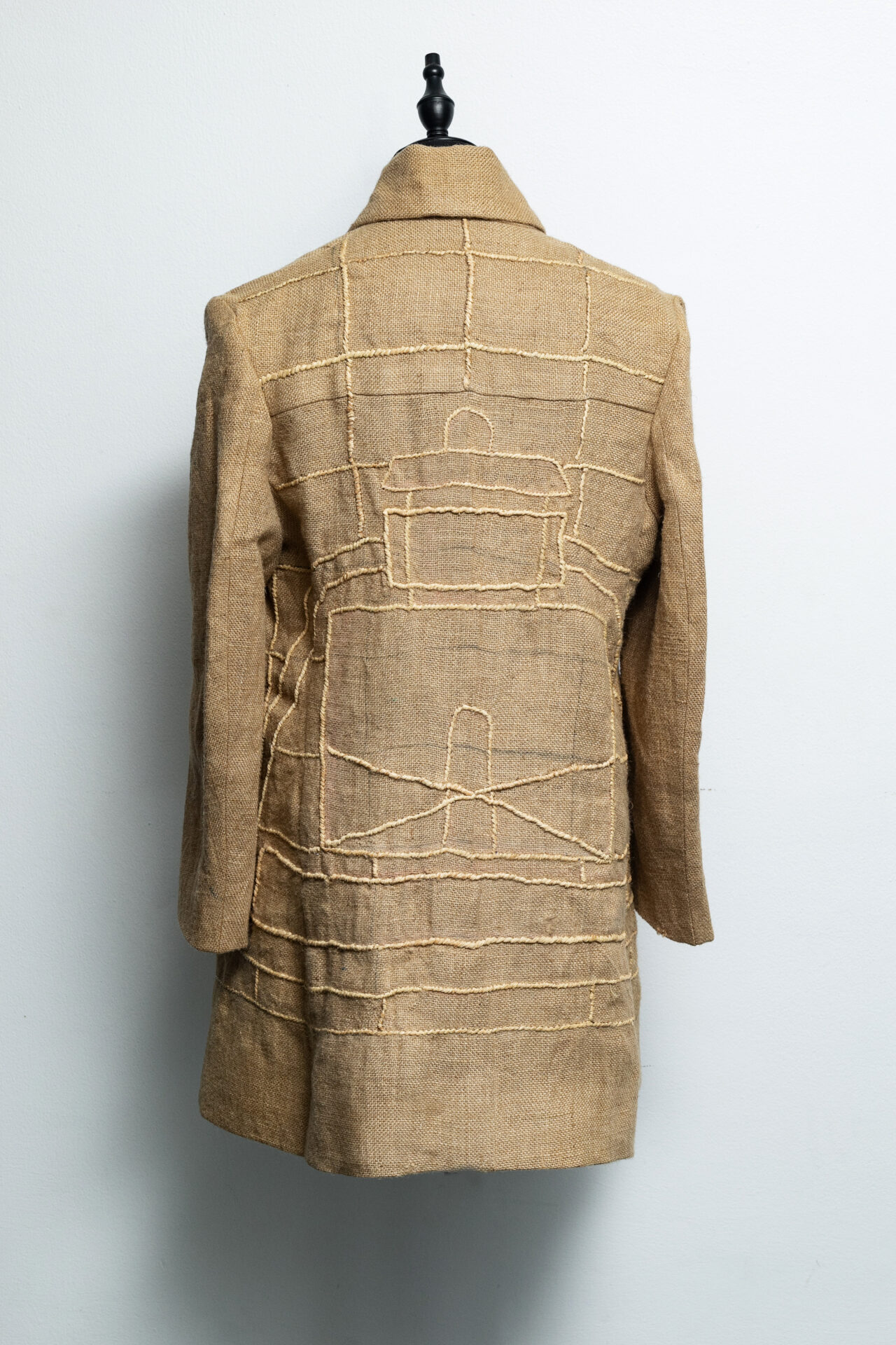 Le jute, matière de la terre, devient le support d’un dialogue entre ombre et clarté.